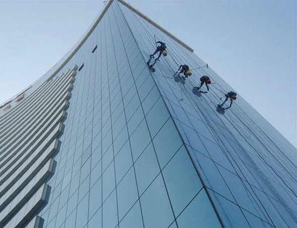 随着现代文(wén)明的提高(gāo)、经济的高速发展和人们生活水平的快速提高,越来(lái)越多的高楼大厦拔地而起,随之(zhī)而来的就是建筑(zhù)物外墙清洗行业的兴起,外(wài)墙清洗(xǐ)业在我国已引起普遍注(zhù)意和重视。所有的高层建筑物外墙,由于常年日晒和风吹雨打,以及大气中有害的气体和油烟等污染和化学反应(yīng)的侵蚀,使得建(jiàn)筑物外墙产生了污(wū)垢和风化,既影响了建筑物的标致和市容,又(yòu)损坏了建筑物。因此,清(qīng)洗建筑物的外墙,不仅美化了环境,而且起到了保护建筑物的作用(yòng)。我们的高空外墙(qiáng)清洗服务包括: